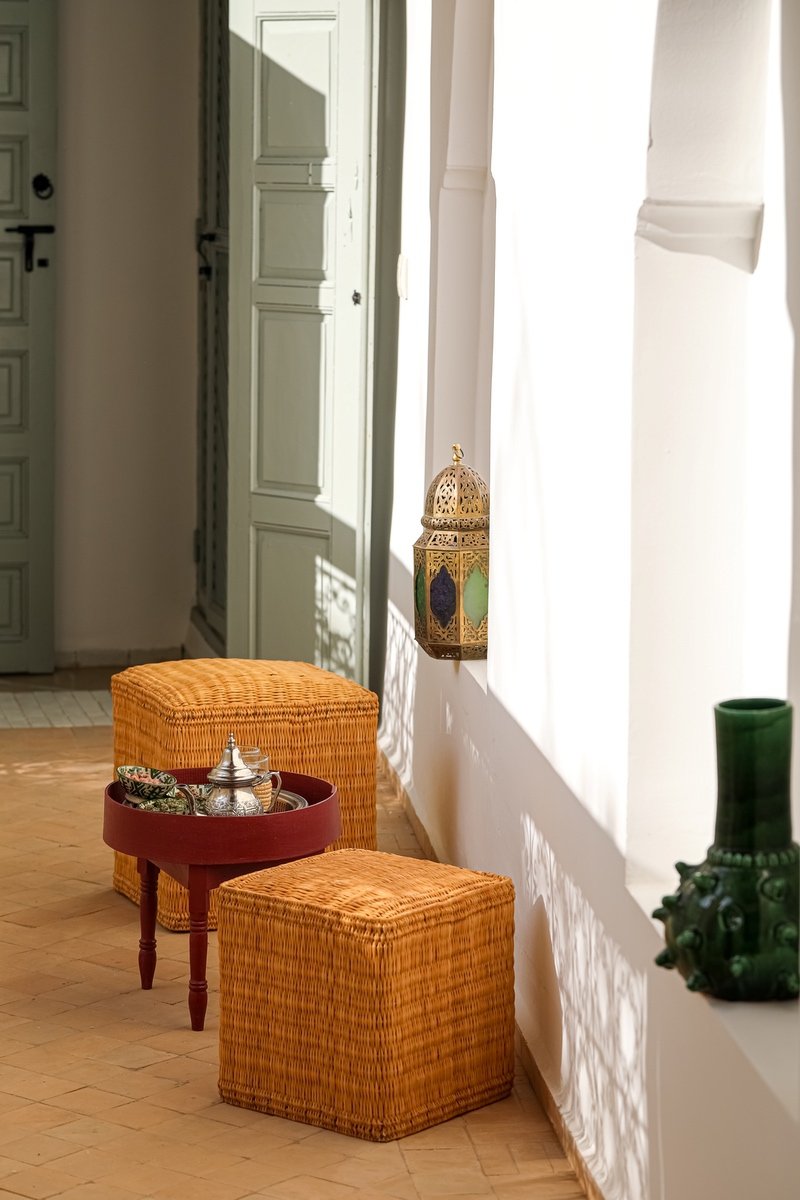 The riad is built around a peaceful central courtyard filled with greenery, natural light, and the gentle sound of water. Every room has been individually designed with care, mixing artisan craftsmanship — tadelakt, hand-painted tiles, wrought iron — with modern amenities for a stay that is both authentic and comfortable.